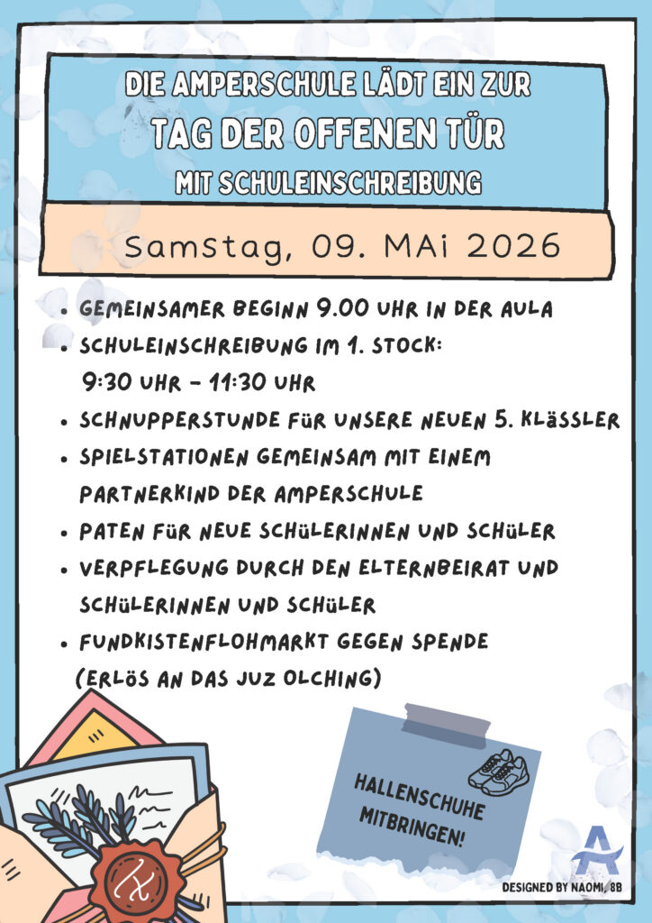 Dann kommen Sie zu unserem Amperfrühling. Dieses Angebot ist besonders für Eltern von Kindern aus der 4. Klasse gedacht, die ihr Kind für die 5. Klasse bei uns anmelden wollen.