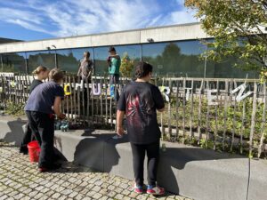 Unsere Religionsgruppe nahm sich als Aufgabe vor, den Schulgarten unserer Schule wieder zu verschönern. Die Schüler und Schülerinnen arbeiten gezielt und strukturiert an dem Projekt den Schulgarten wieder zu erneuern. Die Klasse arbeitete konzentriert an den Aufgaben z.B. an dem Hochbeet. An dem Hochbeet grub die Religruppe die Erde raus, sodass man eine neue hinein füllen konnte. Noch eine Aufgabe war, die Buchstaben die an dem Zaun des Schulgartens befestigt sind, in unterschiedlichen Farben anzumalen. Noch ein wichtiger Teil des Projektes war die ganzen Pflanzen und das Unkraut zu entfernen. Dafür benutzte die Religruppe Werkzeuge wie einen Spaten, einen Rechen und noch andere Gartenwerkzeuge.